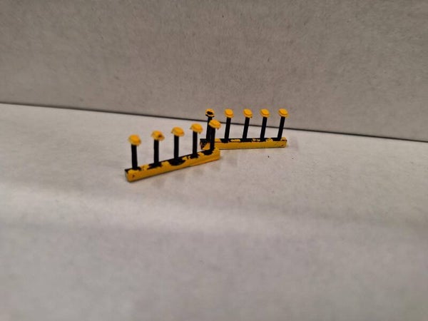 Bij Modelspoor Design zitten 10 potjes in een zakje, voor het plaatsen op de baan dient u alleen het pootje nog van het gietboompje losknippen.
