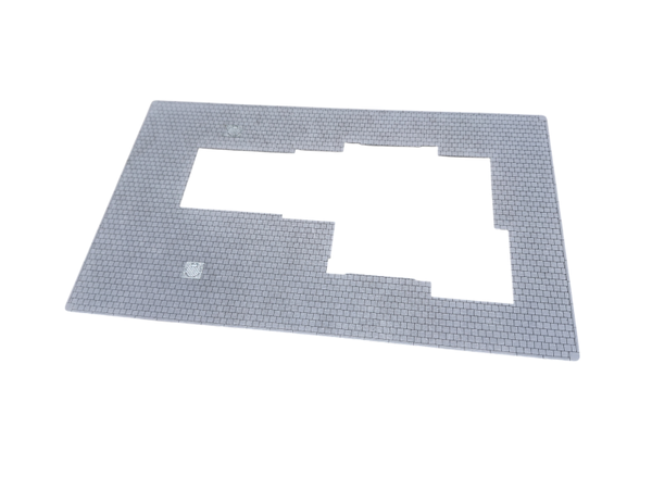Voor onze reeks 5de Klasse Waterstaats stations zijn wij op dit moment bezig met het vervaardigen van stoepplaten waarbij de uitspaaring voor het pand in verwerkt is.
