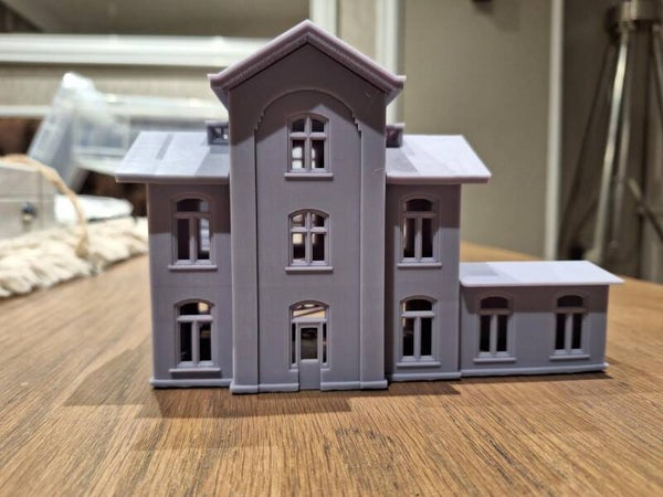 Bij het printen van dit station zijn er aan 1 zijde door een defect aan de printer gaten gevallen in de gevel. Dit station is nog prima bruikbaar door de beschadigde gevel van de zichtzijde af te houden.