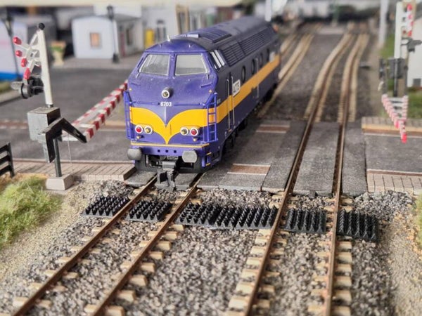 Voorkom ongewenste spoorlopers met deze realistische H0 struikelmatten (ook wel anti-loopmatten genoemd). Deze set is speciaal ontworpen voor modelbanen en is geschikt voor een dubbelspoor situatie.