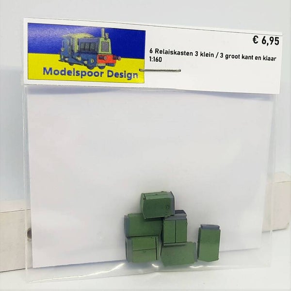 6 Relaiskasten onderverdeeld in 2 varianten, 3 grote en 3 kleine exemplaren.